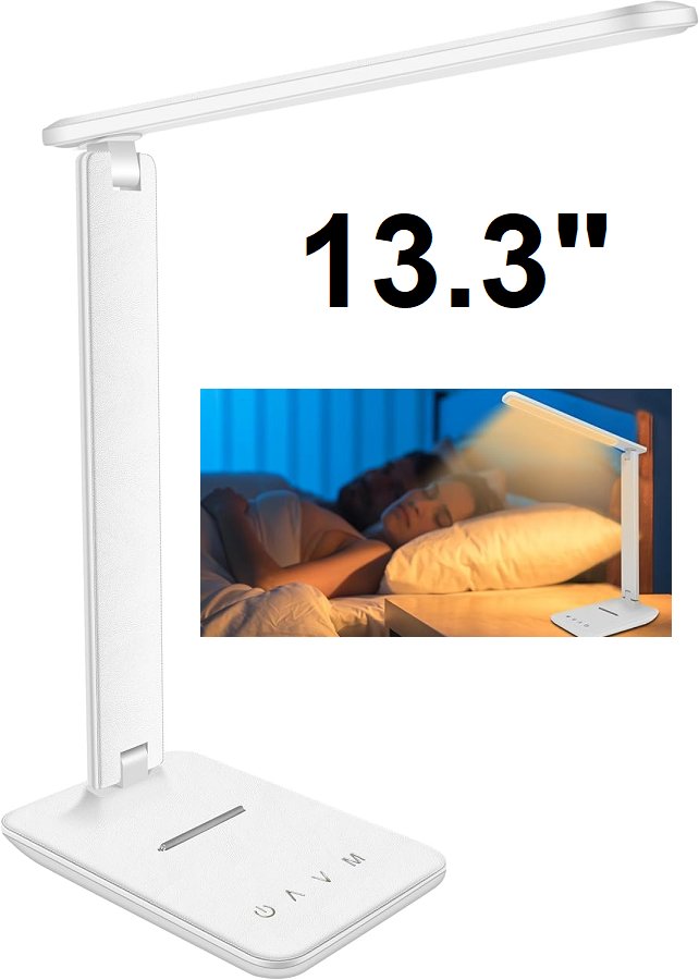 Whicow dimmable LED Desk Lamp with usb charging port and 5 Light settings - 13.3" - white (MODEL: t26a)