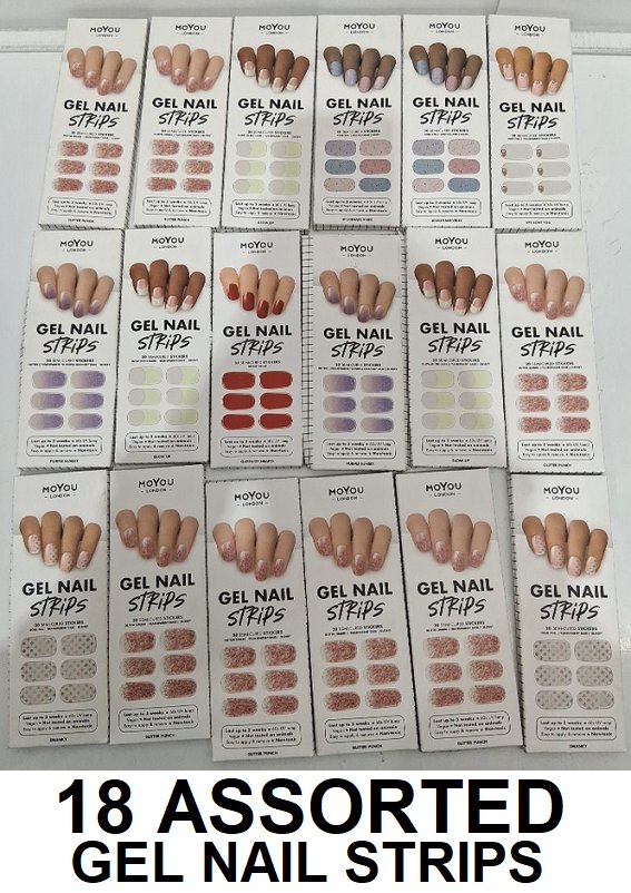 18 ASSORTED GEL NAIL STRIPS- ASSORTED PATTERNS/ COLOURS