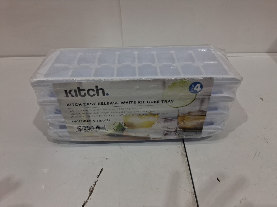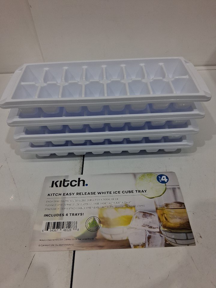 4pk Kitch Easy Release White Ice Cube Tray MAKES 16 ICECUBES - white (MODEL: ‎2867-WHT-4)