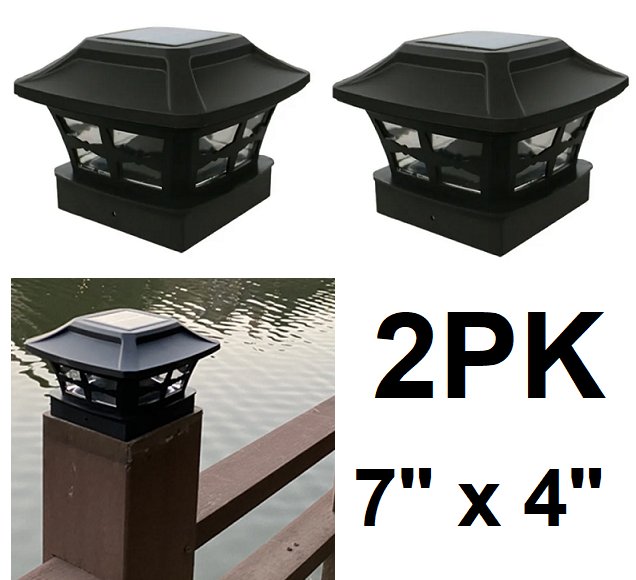 2PK Solar Post Lights FOR Outdoor Fence - 7" X 4" - BLACK