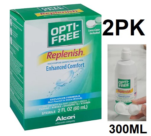 2PK OPTI-FREE Replenish Disinfecting Solution Multi-Purpose Enhanced Comfort - 300ML EACH