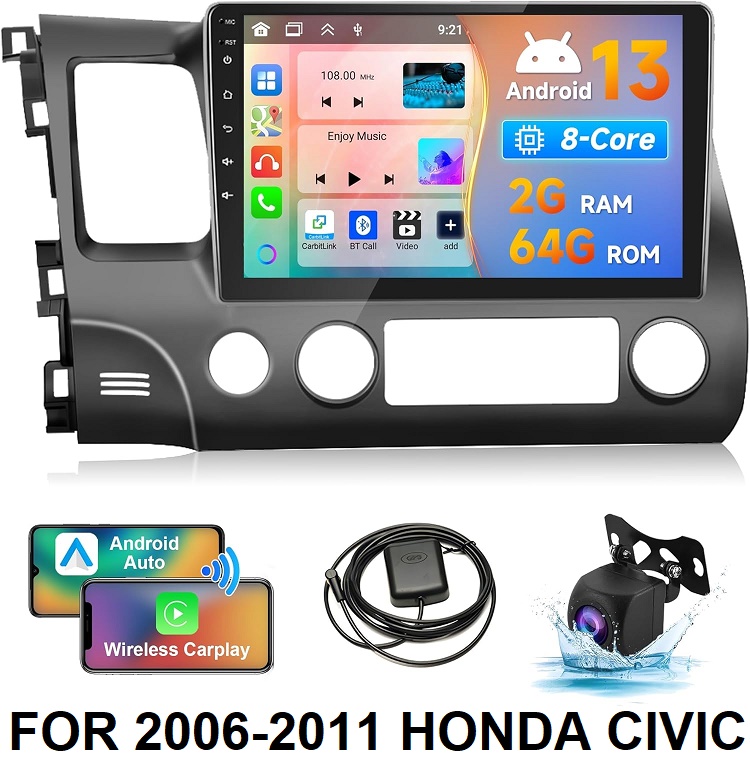 Android Car Radio Stereo Display for Honda Civic (2006 - 2011) with Backup Camera and 10" Touch Screen - 6gb ram, 128gb storage, Works with Apple CarPlay and Android Auto - Black (Model: A7170A3572h1mi2)