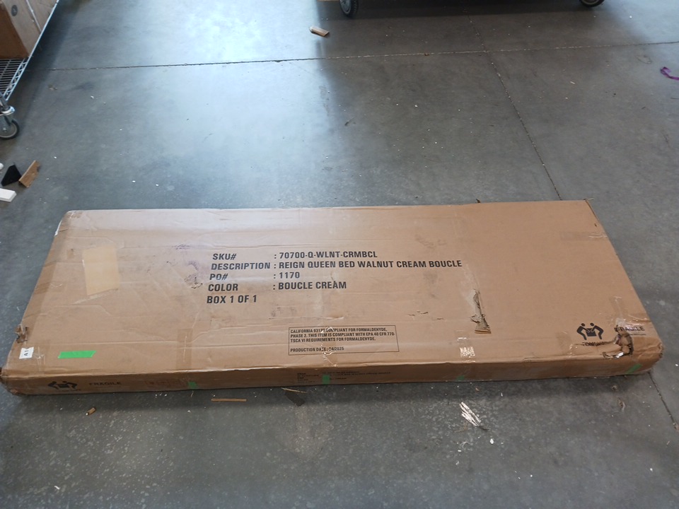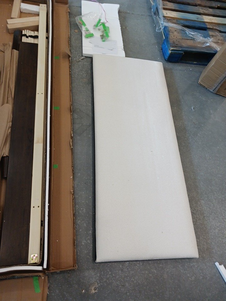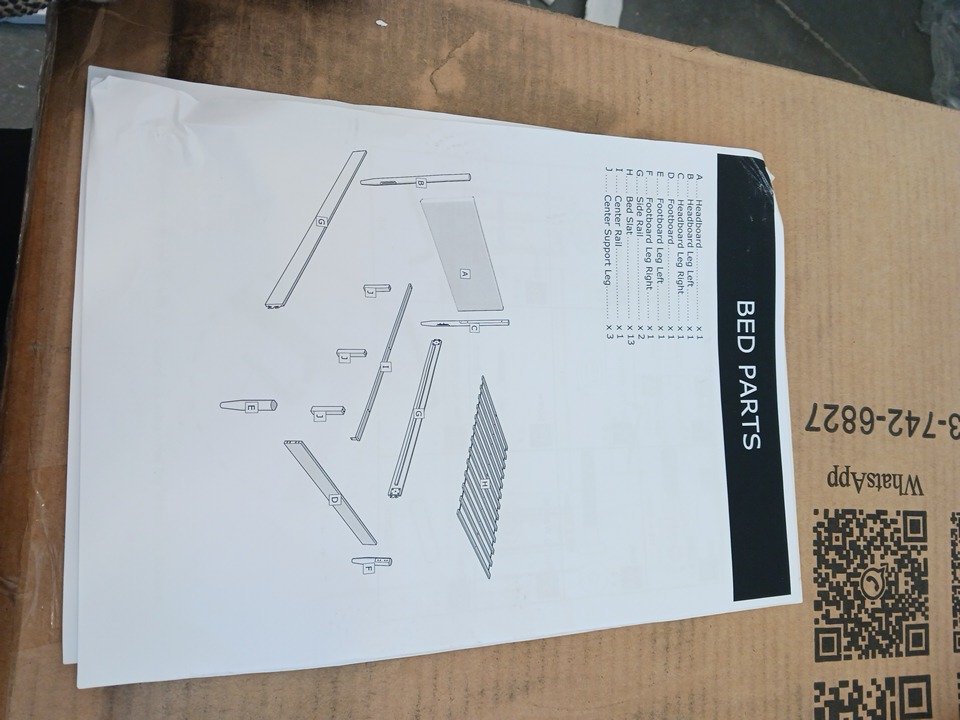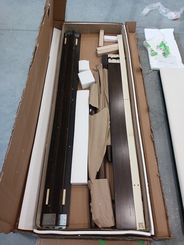 We could not confirm if all the generic hardware components are present, so buyers may need to source standard replacement parts separately to ensure full assembly. The main structural pieces, including the headboard, side rails, and slats, are in good condition with no visible damage. Minor scuffs or surface marks may be present from previous handling and storage, but these do not affect functionality.