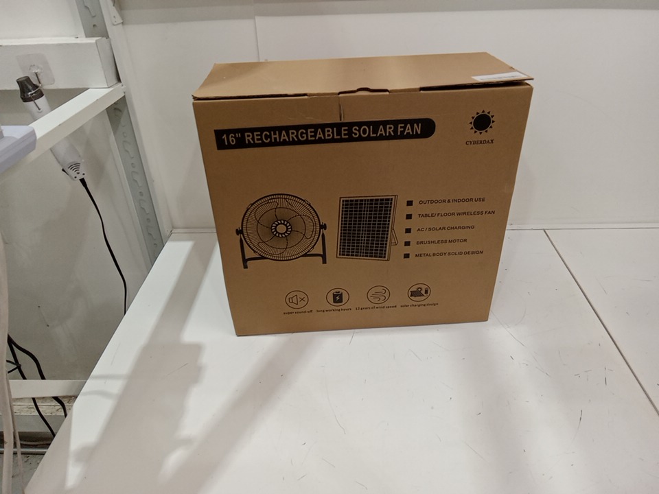 cyberdex portable rechargeable solar fan - 16" - 12 speeds - 11.1v - up to 50hrs runtime - black/yellow (model: cdx-232-16b)