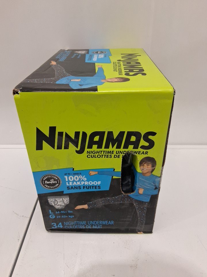 34PK UNISEX YOUTHS NINJAMAS NIGHTTIME UNDERWEAR WITH ODORMASK & ALL-NIGHT LEAK PROTECTION - LARGE - BLUE/GREEN/WHITE