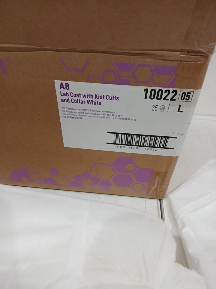 25PK UNISEX Kimtech™ A8 Certified Lab Coats with Knit Cuffs - LARGE - WHITE (MODEL: 10042 )
