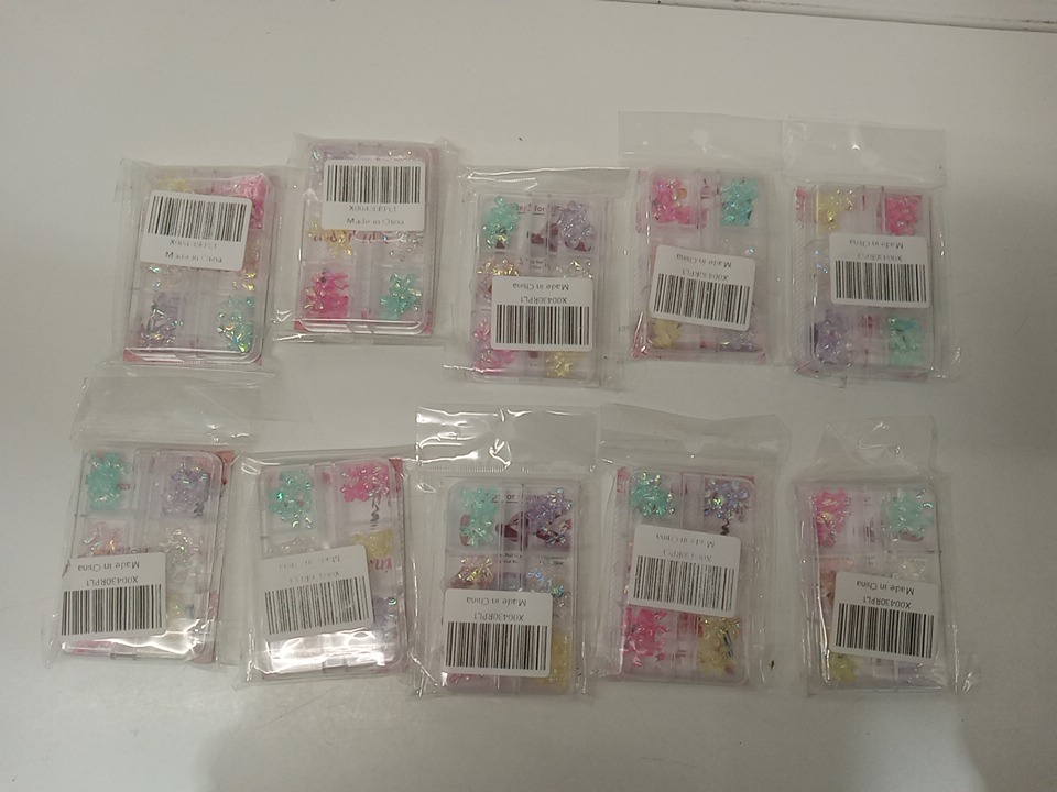 10 assorted 3d nail art ribbon style bows - multicolored