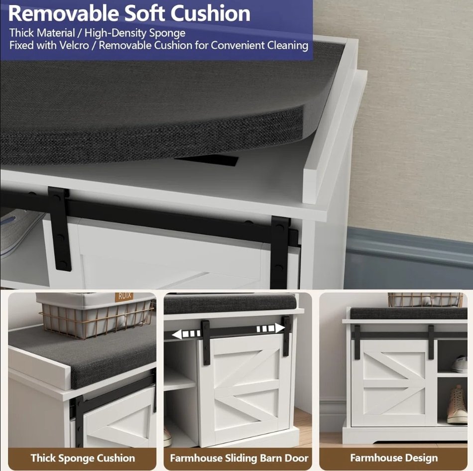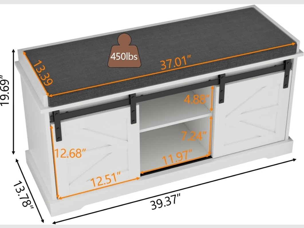 august grove 2 tier shoe storage bench with sliding farmhouse doors - 39" x 14" x 20" - white - (model: i870000865a1)