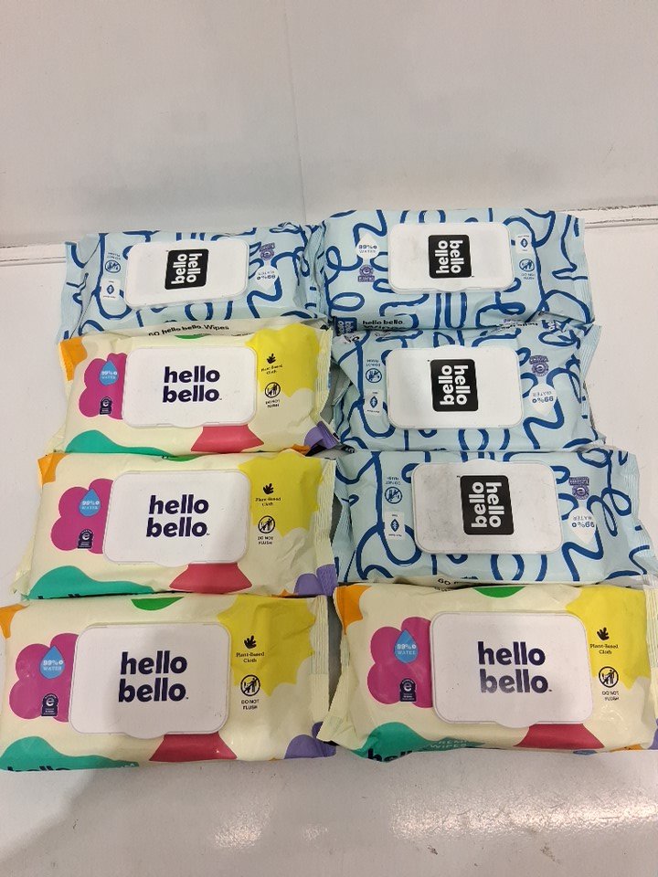 8 ASSORTED HELLO BELLO EIPES - PLANT BASED SCENT FREE & SENSITIVE SKIN (480 TOTAL)
