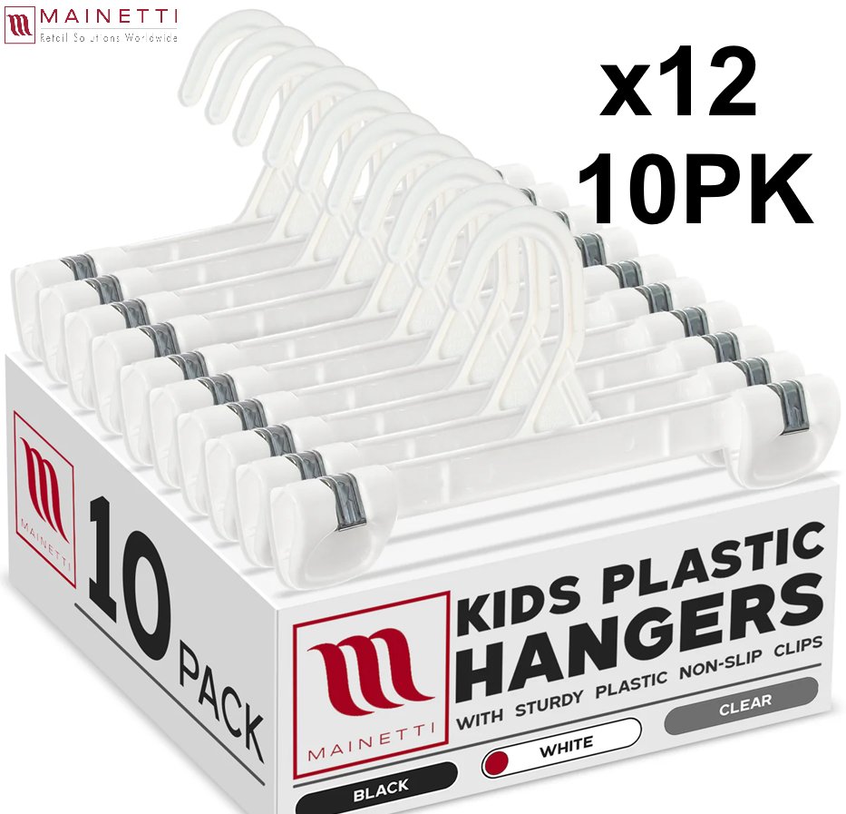 12 (10pk) Mainetti all Plastic pant hangers with clips - 10" - white