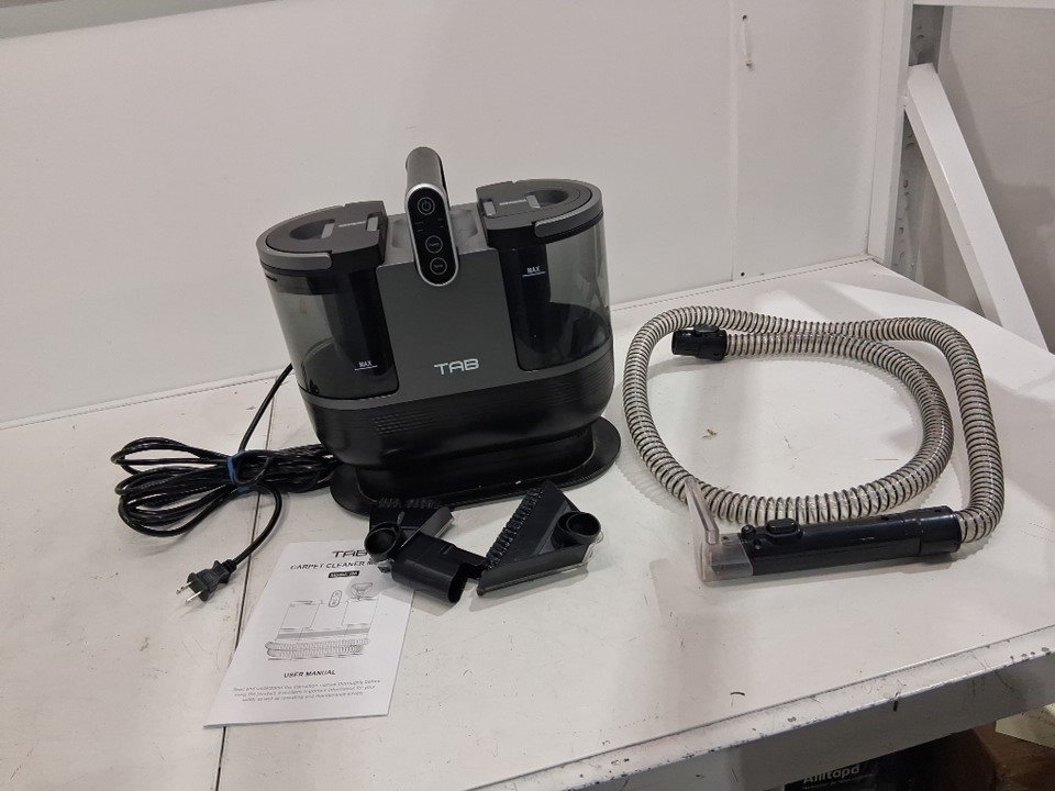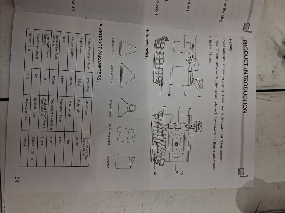 item has some water marks on the inside of cleaner and on tools, tested for power only, see photos.