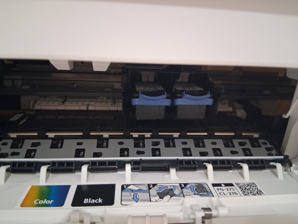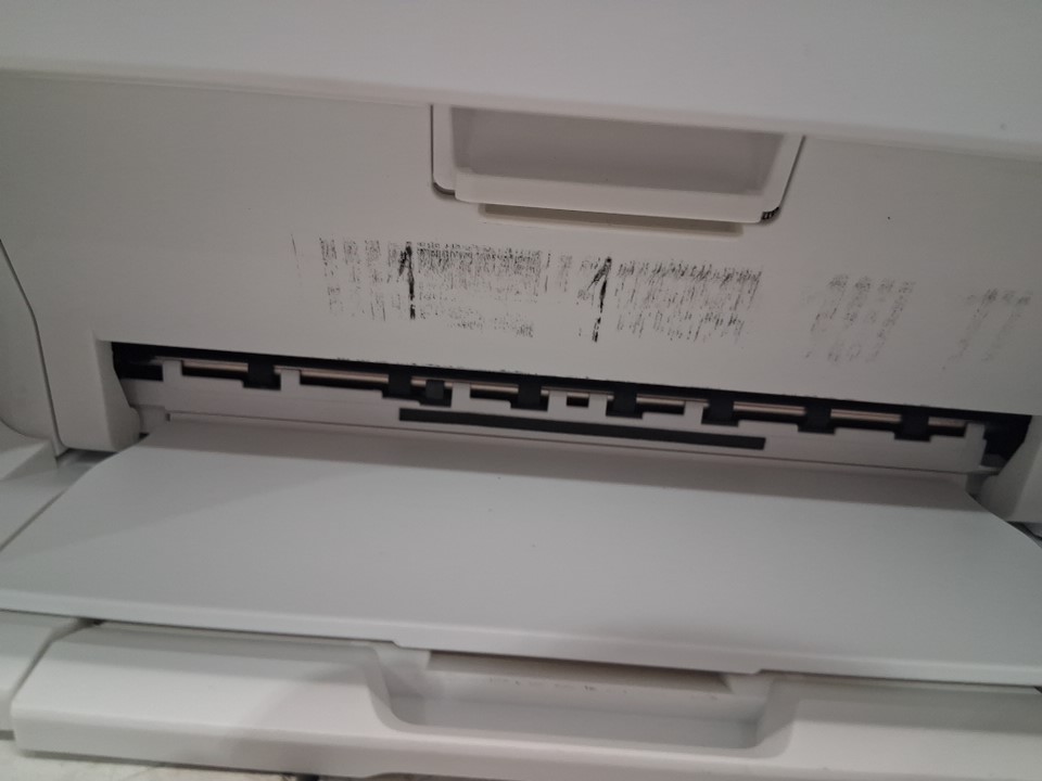 This unit has previously been used. The ink cartridges are already installed. The top cover is broken on one side of the hinge. The top still lays flat. This unit has been tested for basic power only. See photos for details.