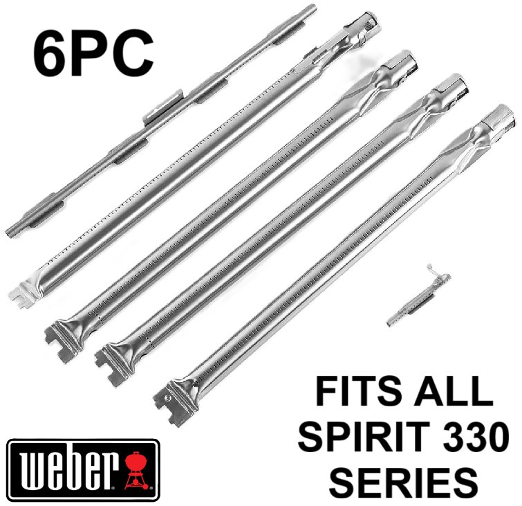 6PC SafBbcue Weber Spirit 330 Series Enamel-Coated Replacement Grill Burner Tubes - Silver (Model: 69787/65518)
