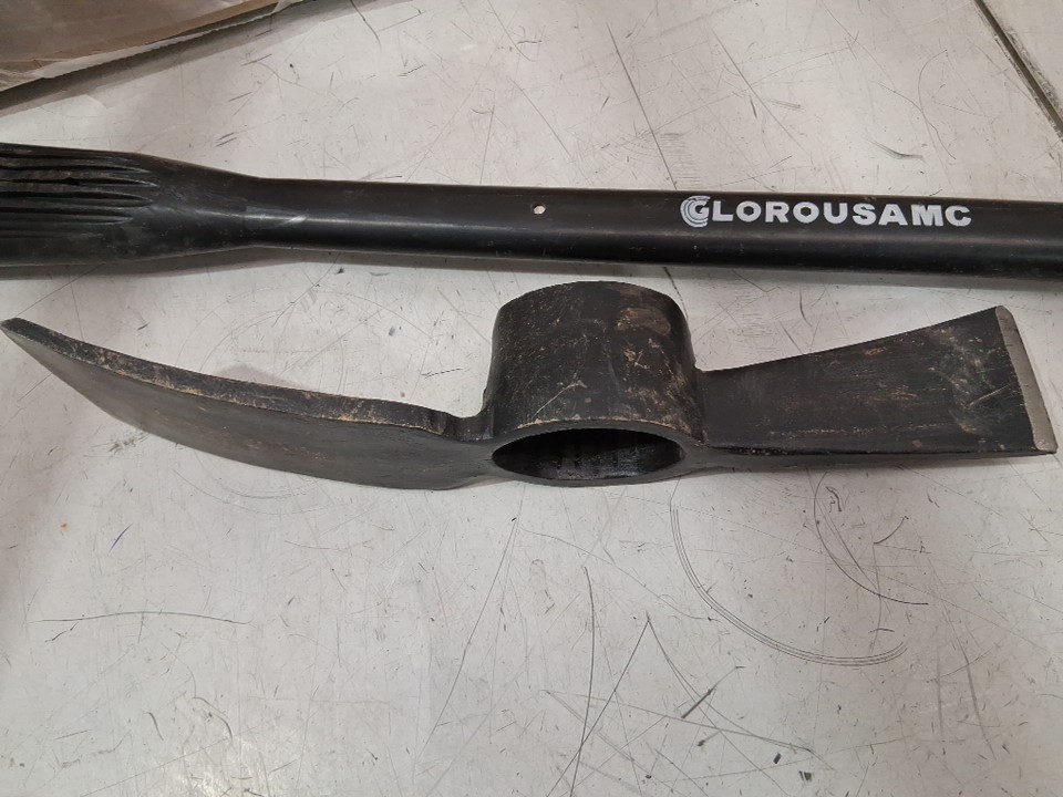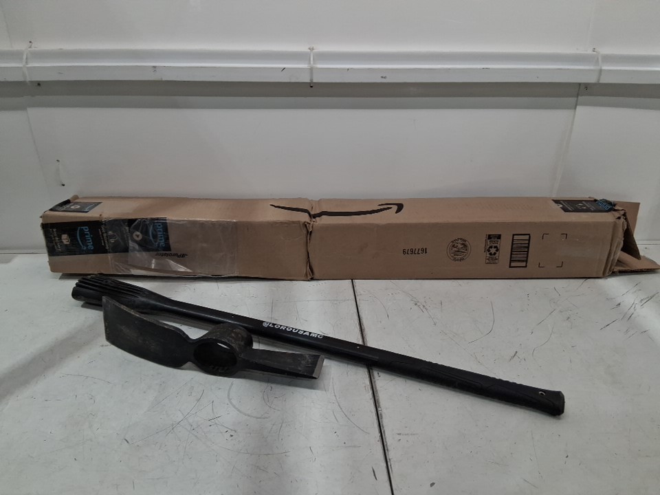 There is some dirt and sand residue on the item overall, and the axe is a bit dull and will most likely need to be sharpened.