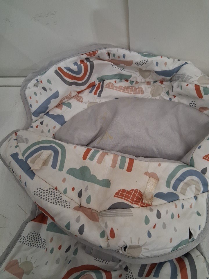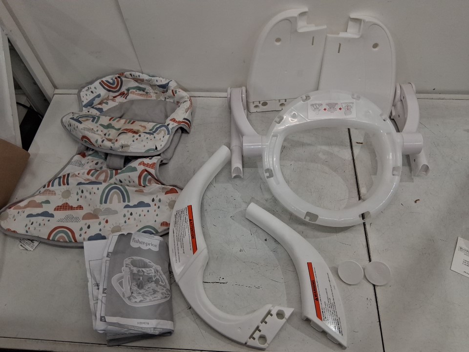 The item is missing the hanging play accessories, also has stains indicates previous use. Please see photos.