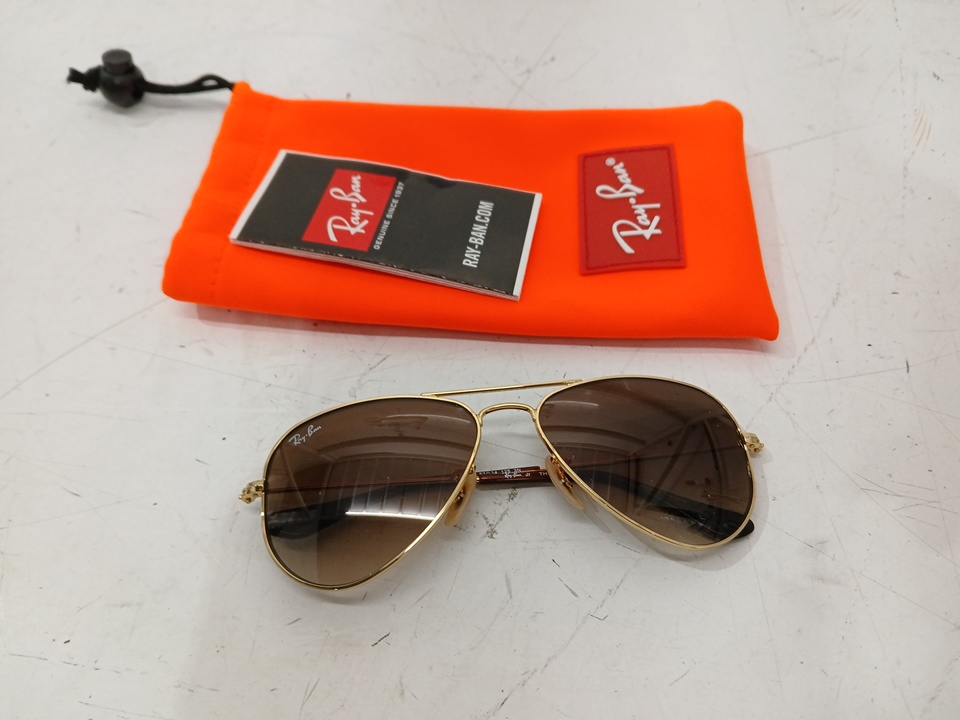 juniors' ray-ban aviator metal sunglasses -52▢14-125 - polished arista gold/gradient brown lens (223/13) - (model: rj9506s).