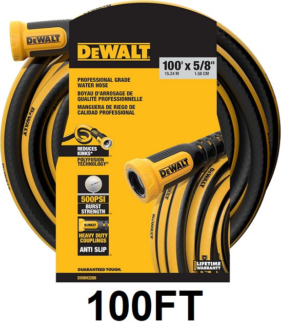 DEWALT Professional Grade Heavy-Duty Water Hose- 100FT x 5/8" - YELLOW/BLACK (MODEL:‎DXMH3288)