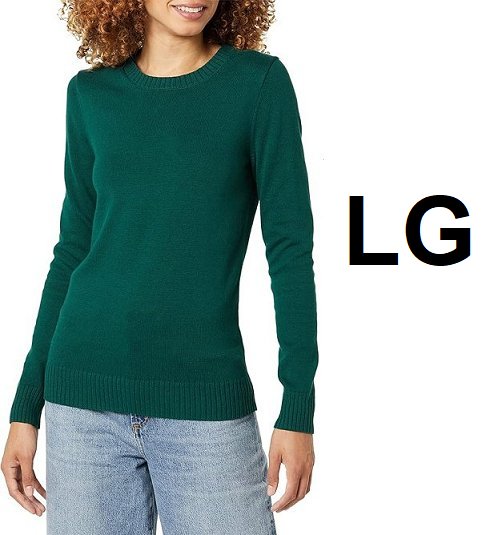 womens amazon essentials standard 100% cotton crewneck sweater - large - DARK GREEN (model: ae18913114)