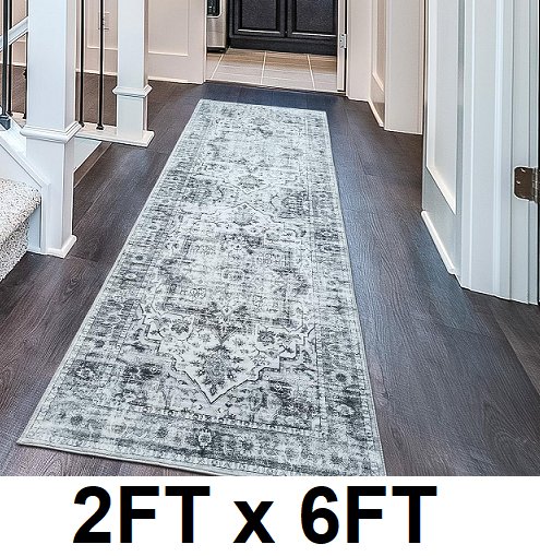 MANDALA RUGS ASTRA COLLECTION MACHINE WASHABLE AREA runner RUG - 2FT X 6FT - grey (MODEL: ASTRA-004038/ astra2669b1-2060)