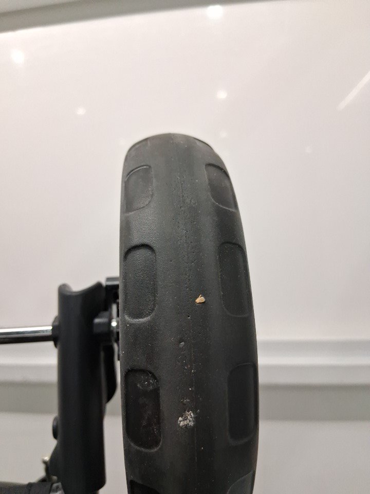 the product was discovered to have some dirt and wear on the wheels, the dirt can be cleaned, please see photos for more details