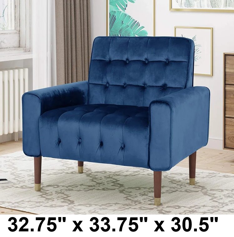MERCER41 WYTON WIDE TUFTED ARMCHAIR - 32.75'' X 33.75'' X 30.5'' - BLUE