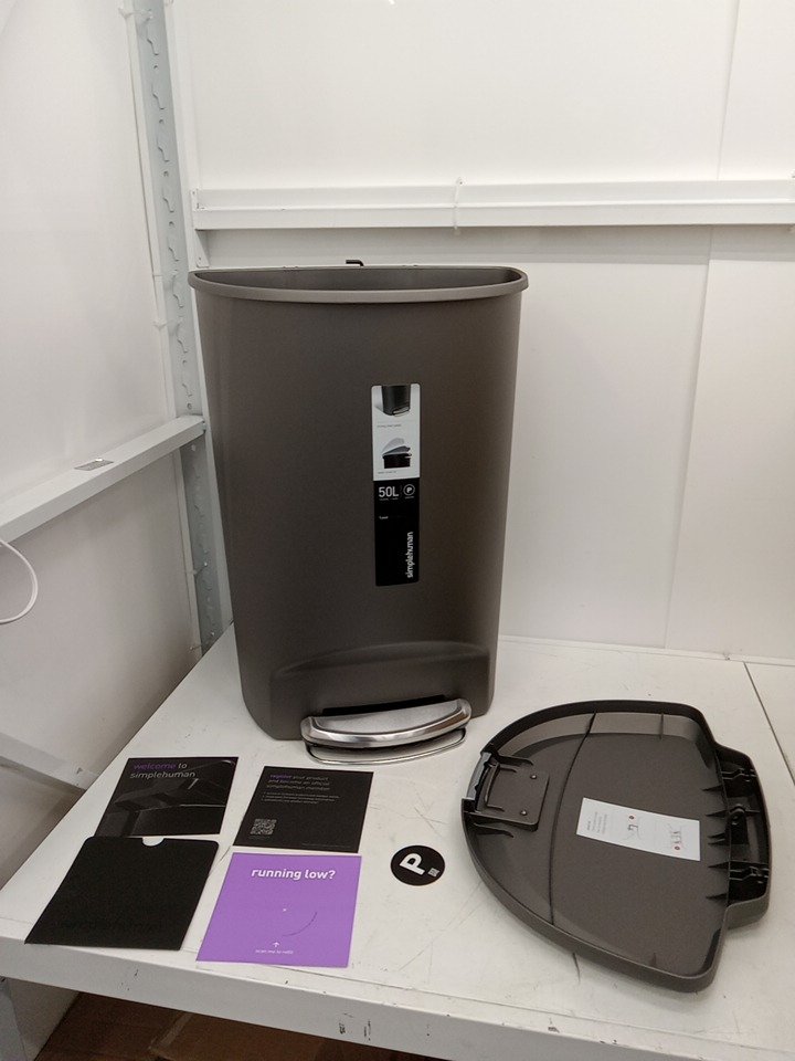 SIMPLEHUMAN SEMI-ROUND SOFT-CLOSE PEDAL TRASH GARBAGE CAN WITH PET PROOF LOCKING LID - 50L - BLACK (MODEL: CW1355)