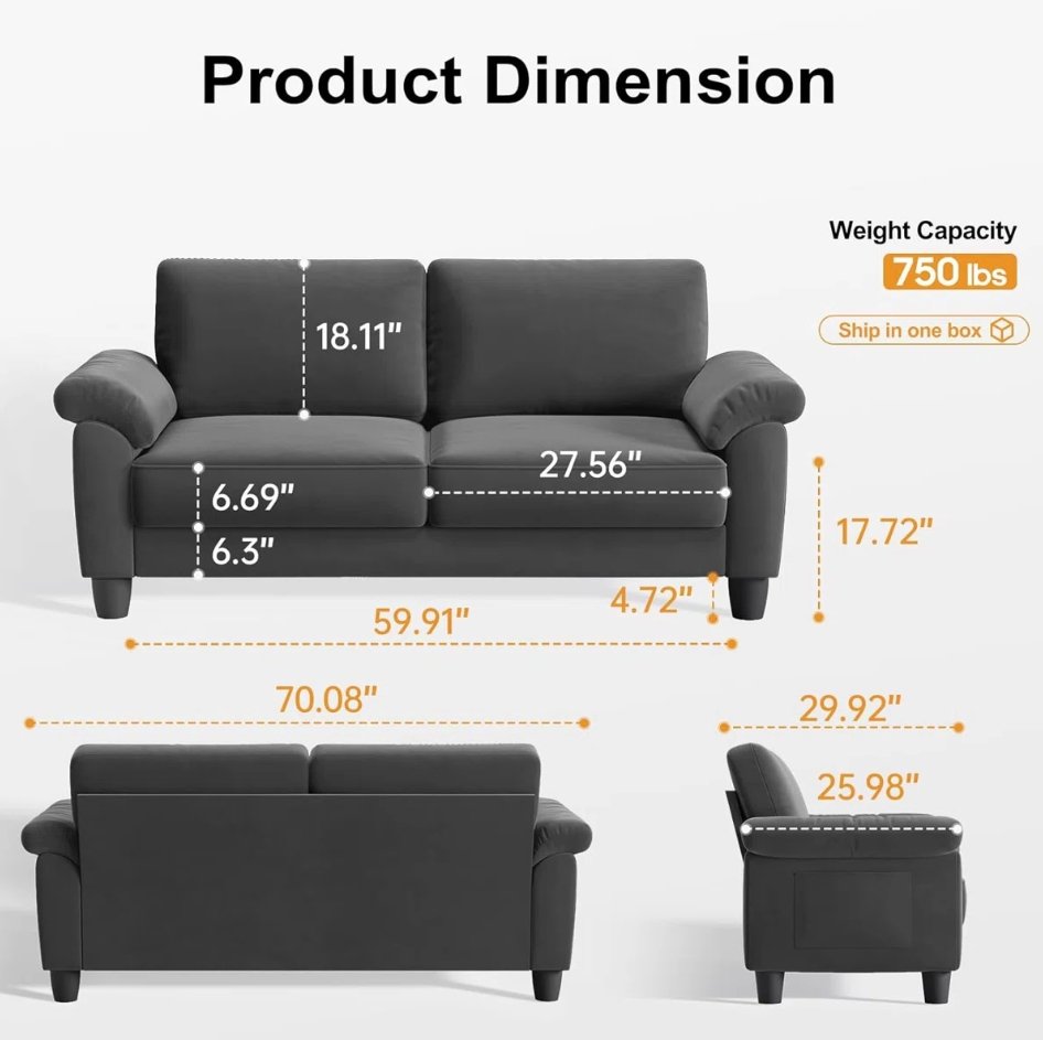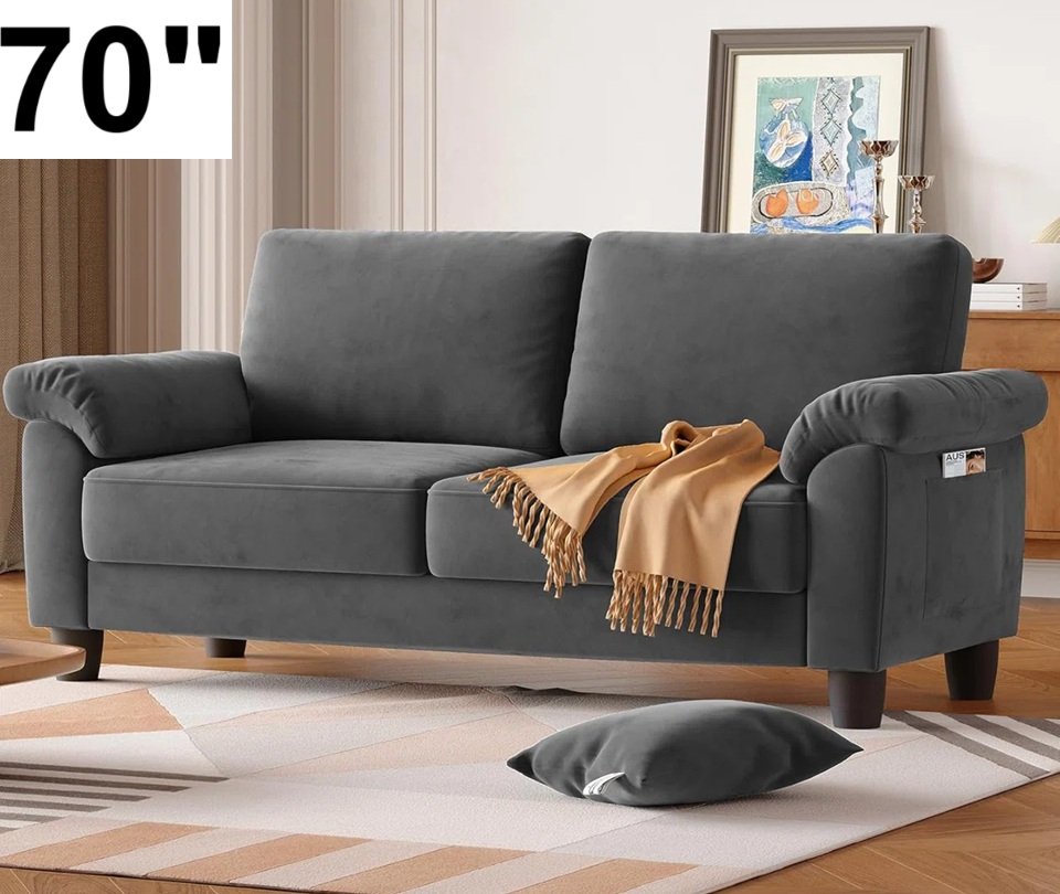 ebern designs velvet loveseat sofa - 70" x 30" x 36" - grey - (model: jjpf01huzh)