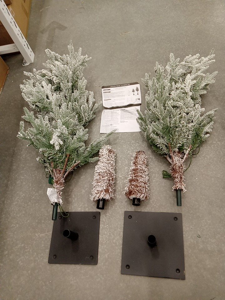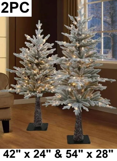 2PC Holiday Time Flocked Snowy Christmas Trees - 42" x 24" - 54" x 28" - Snowy White (Model: T1025-200-W)