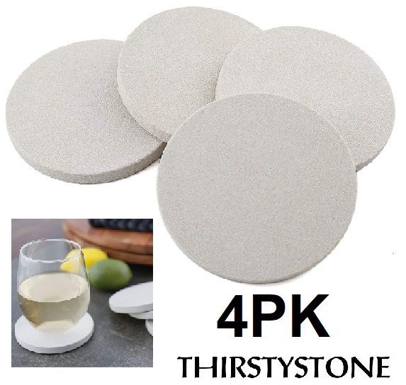 4PK THIRSTYSTONE SANDSTONE COASTERS WITH CORK BACKING -PLAIN NATURAL