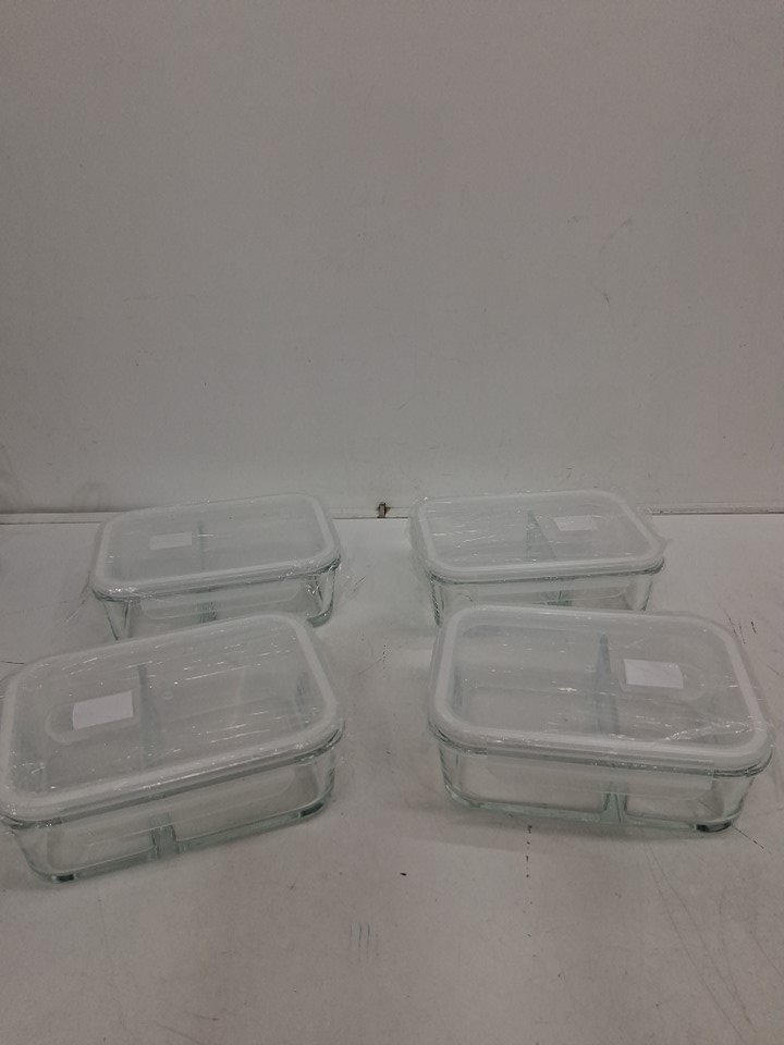 4PK Prep Naturals Glass Meal Prep Containers 2 Compartment - 30oz - Clear