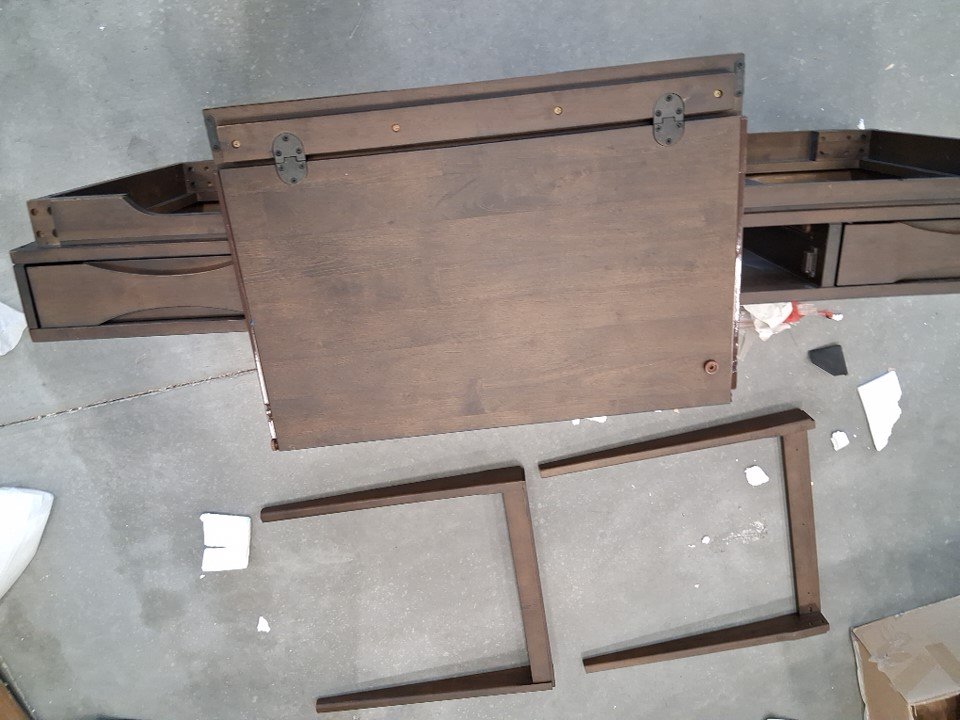 legs have signs of wear, small crack in drawer, and one of the rollers is detached.