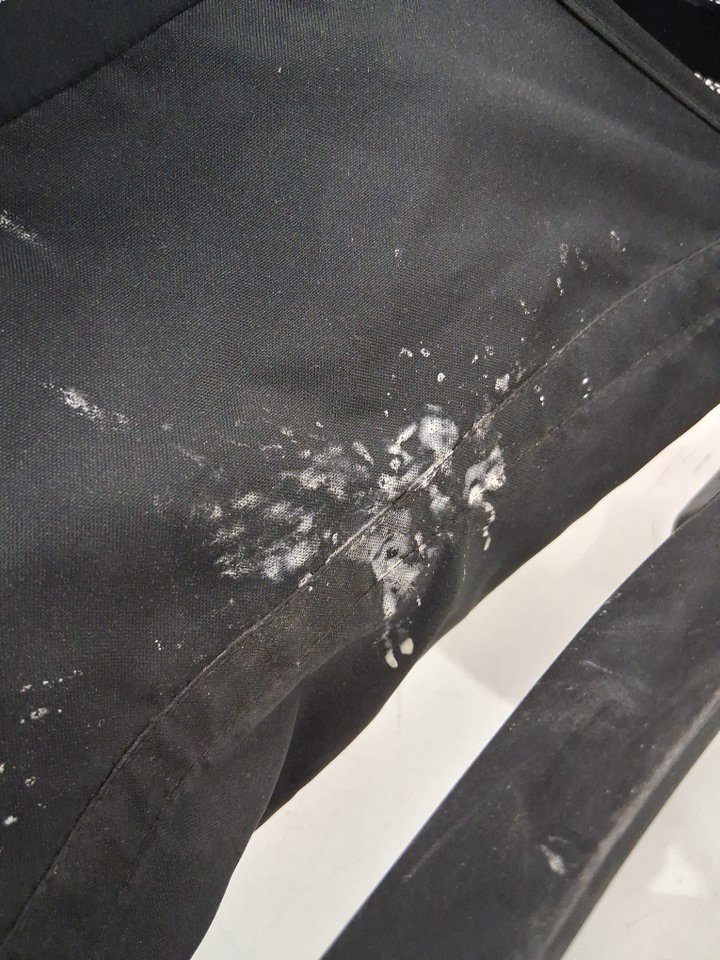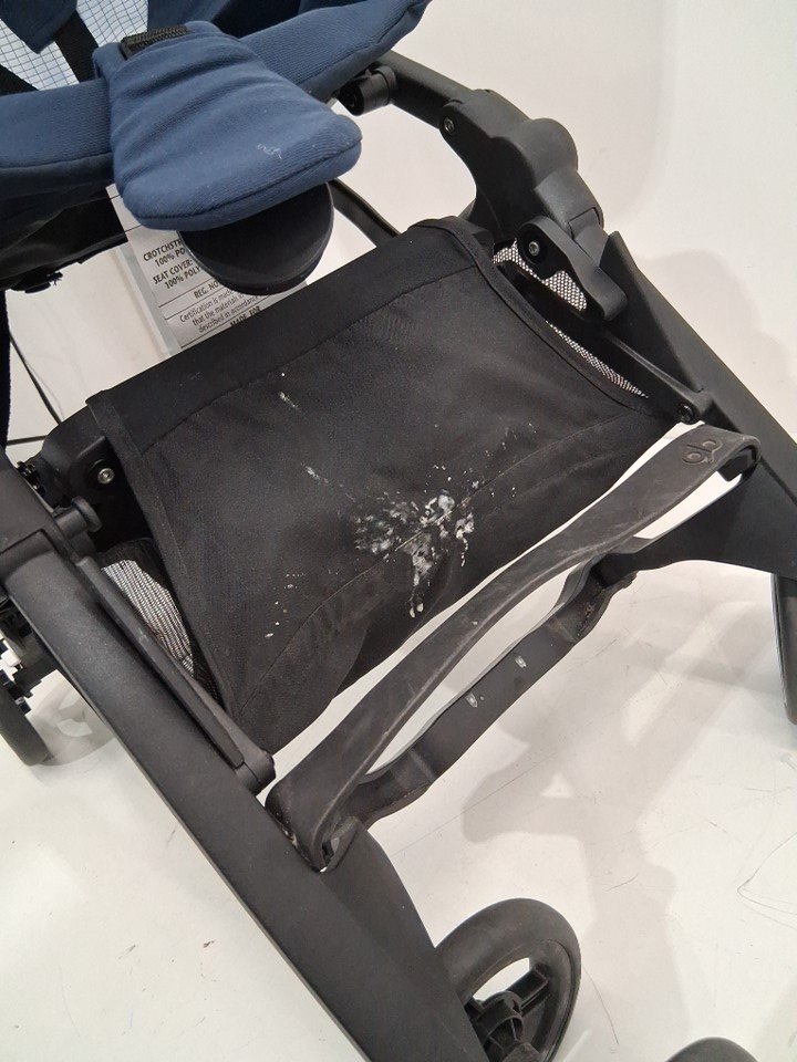 item has a white mark underneath shown in pictures and also has the wheels with light dust from previous use