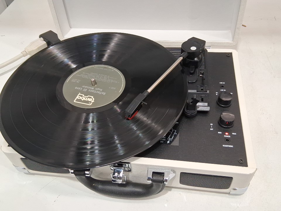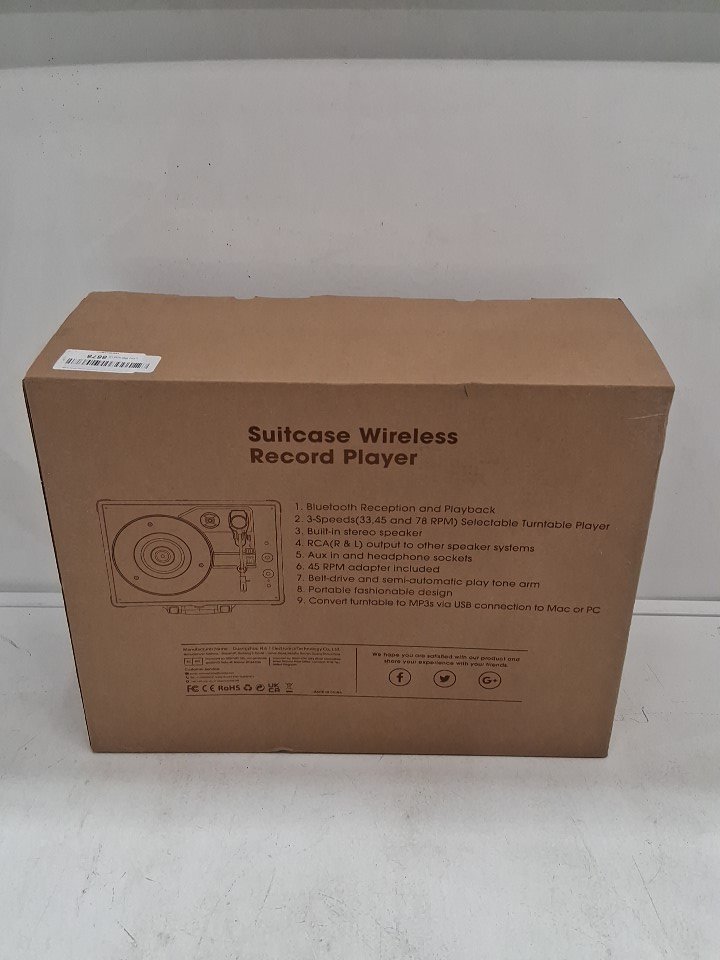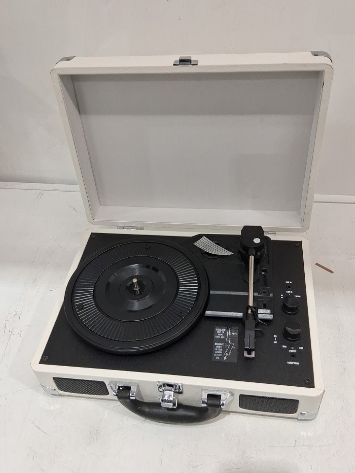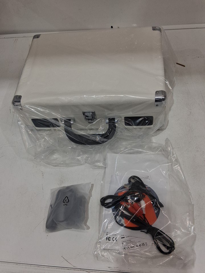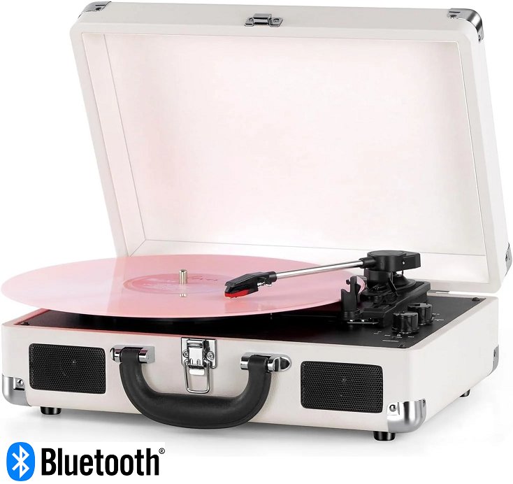 vintage Vinyl Record Player suitcase with Built-in Speakers and Bluetooth - 3-Speed - white