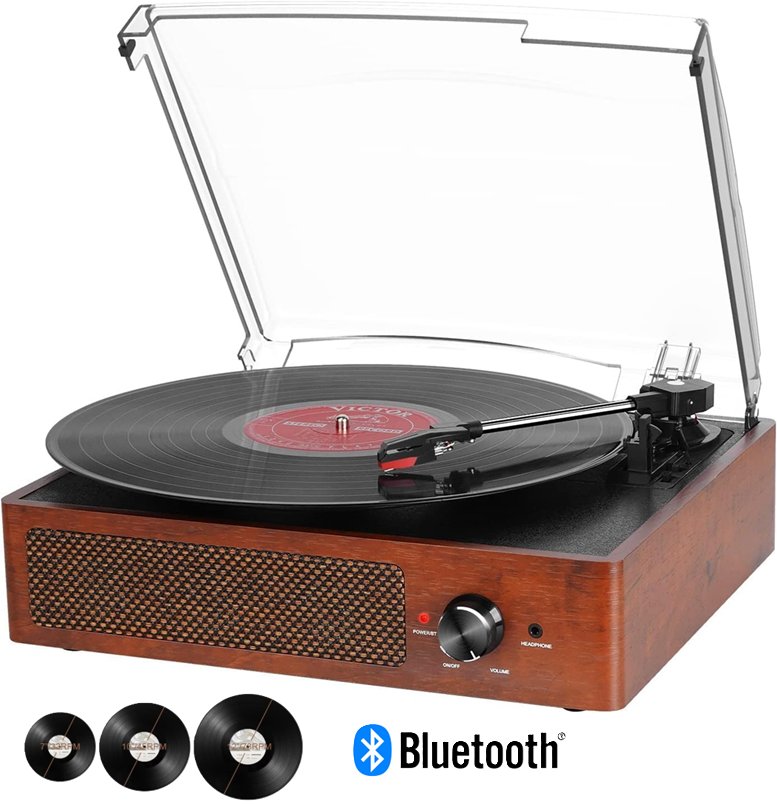 Vintage style vinyl record player with built in speakers and Bluetooth/rca/aux - 3-speed - black/brown - (Model: M9)