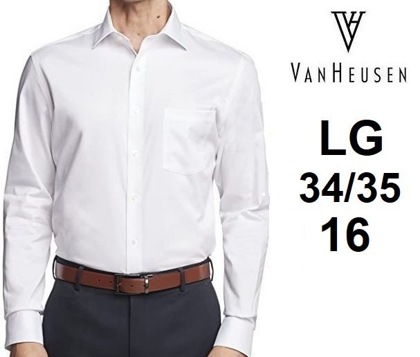 MEN'S VAN HEUSEN fitted WRINKLE FREE BUTTON DOWN OXFORD COLLAR LONG SLEEVE DRESS SHIRT - LARGE, 16" NECK, 34/35" sleeve - WHITE