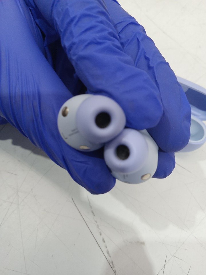 There are minor dirt residue on the ear tips from previous use. Tested for power and functionality. (Please see photos)