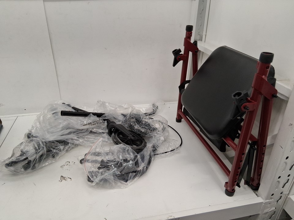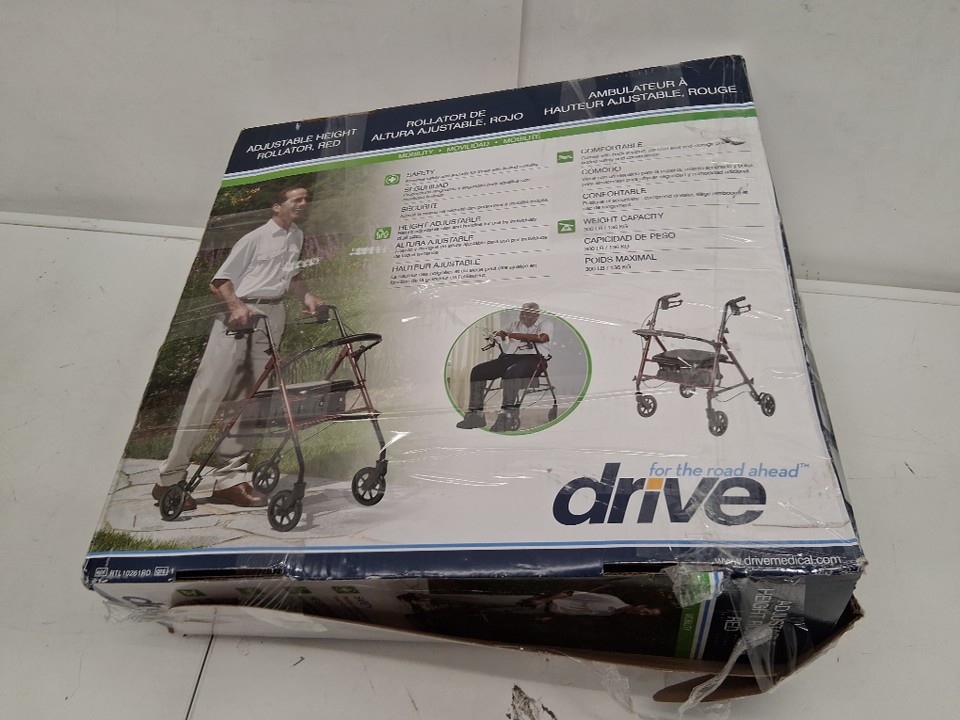 DRIVE MEDICAL 4 WHEEL ROLLATOR WALKER STURDY STEEL FRAME WITH BASKET FOR PERSONAL ITEMS, 7.5" CASTER WHEELS IDEAL FOR INDOOR AND OUTDOOR USE - RED (MODEL: 10257RD-1)