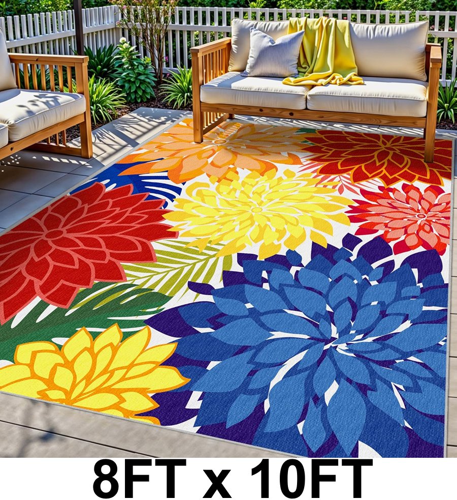 Outdoor Area Rug Washable Multicolored Patio Rug Tropical Botanical Modern Floral Outdoor Carpet Non-Slip for Patio - 8FT x 10FT