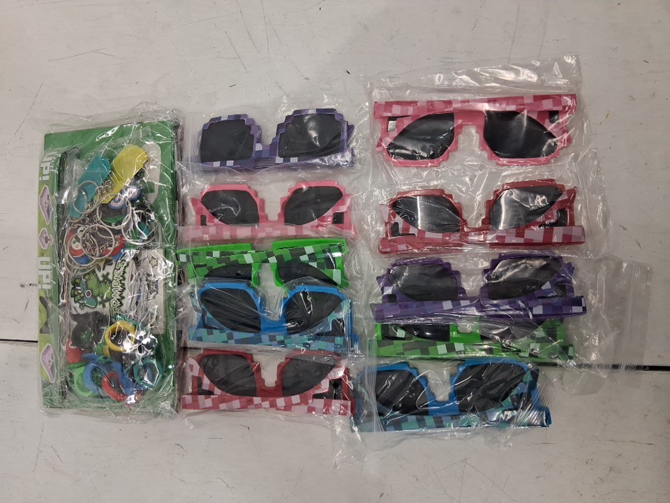 96PC Video Game Party Favors - STICKERS, PARTY BAGS, KEYCHAINS, (10)SUNGLASSES, SLAP BRACELET