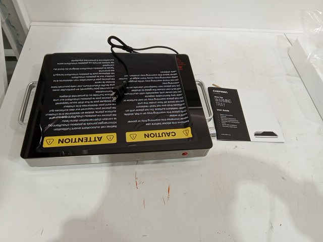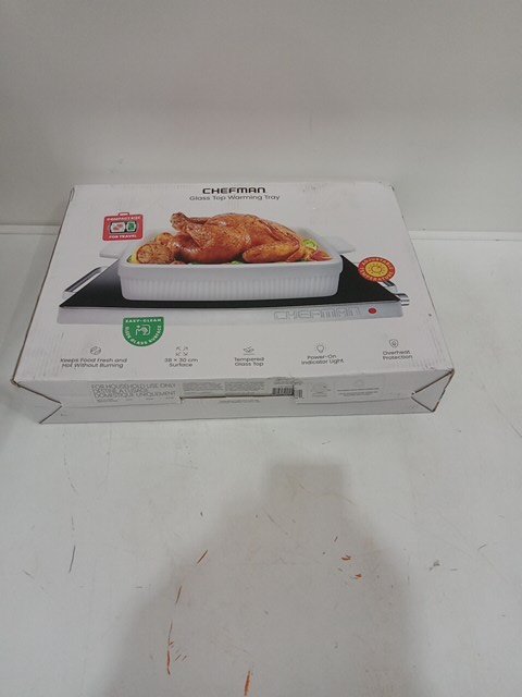 CHEFMAN ELECTRIC COMPACT GLASSTOP WARMING TRAY WITH TEMPERATURE CONTROL - BLACK - (MODEL: RJ22-MBTC)