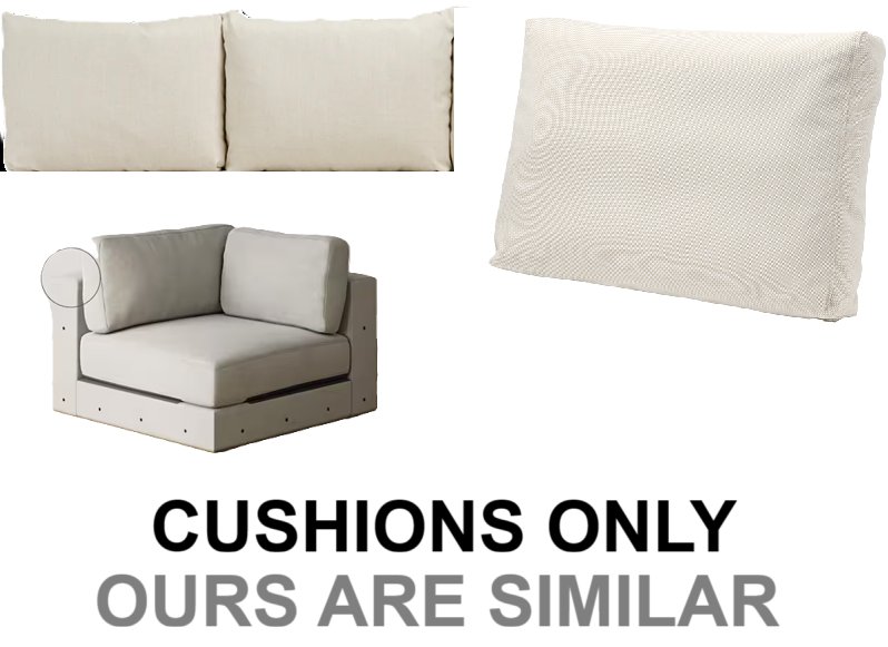 Side/ Back Cushion: ~20" x 22.5" Side/Back Cushion: ~ 17"x 27" Seat Cushion: ~ 24" x 24"