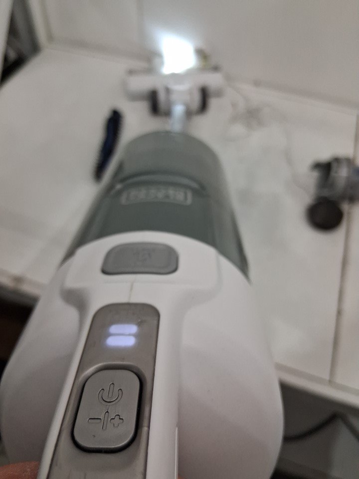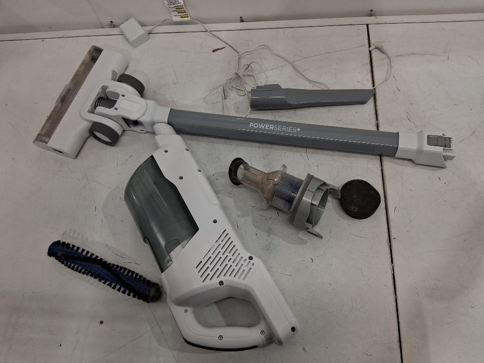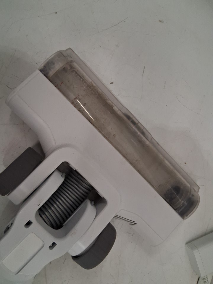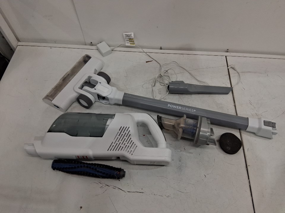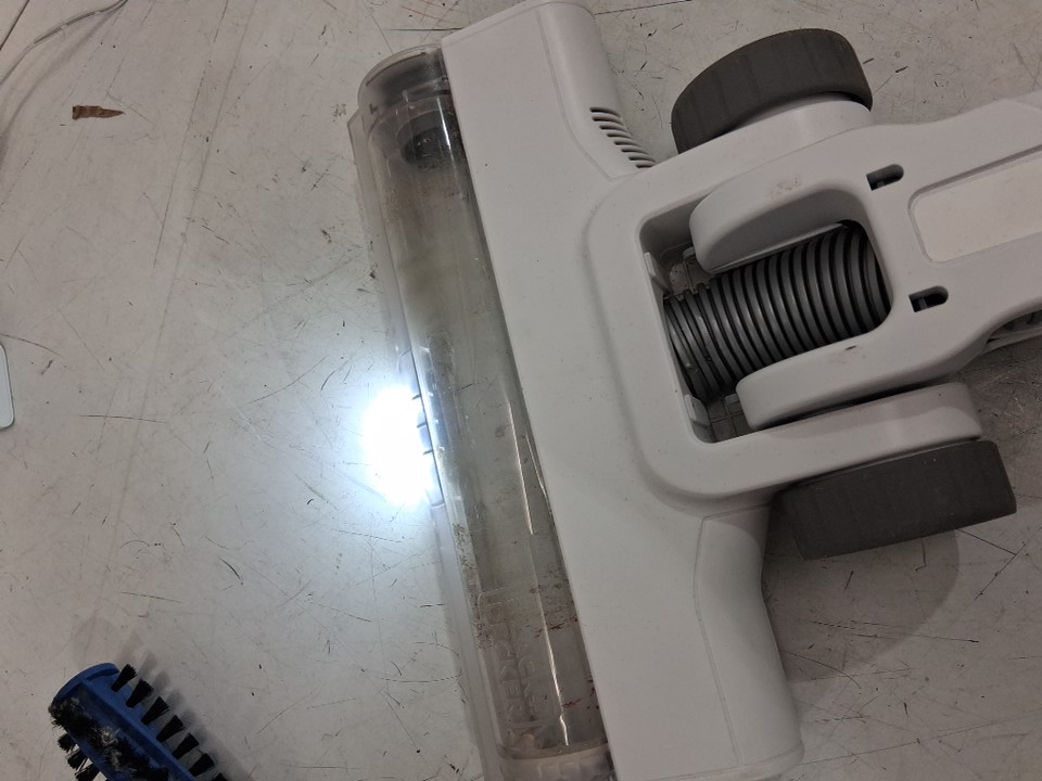 The item has dust in the bin and on the attachments indicates previous use. Tested for basic power only.