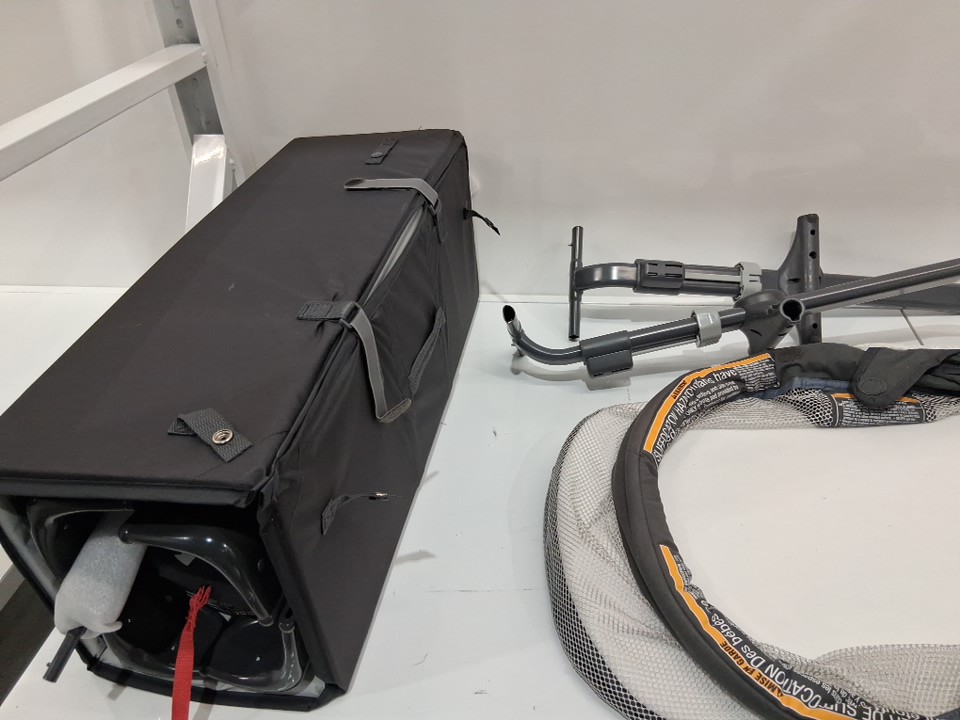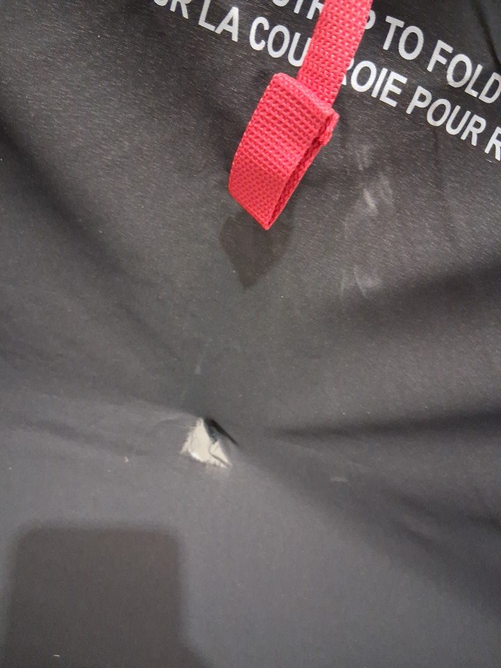 please note the product was discovered to be covered in dust, dirt, and scuff marks, we also found a small tear in the bottom of the product, please see photos for more details