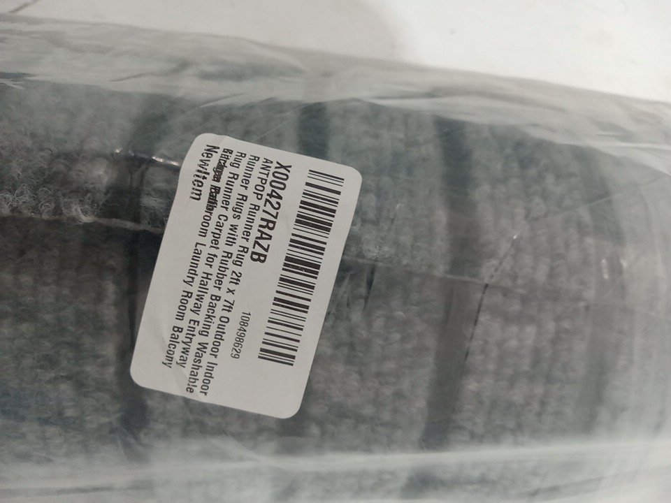 antpop non-slip low pile indoor/outdoor runner rug carpet - 2ft x 7ft - grey stripe