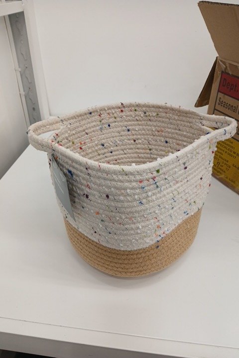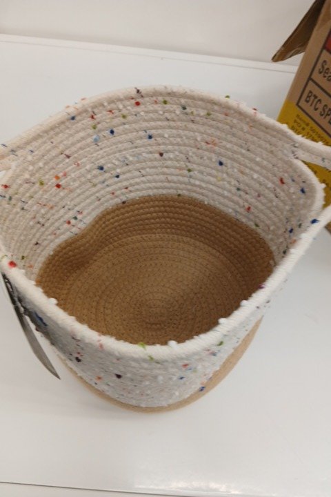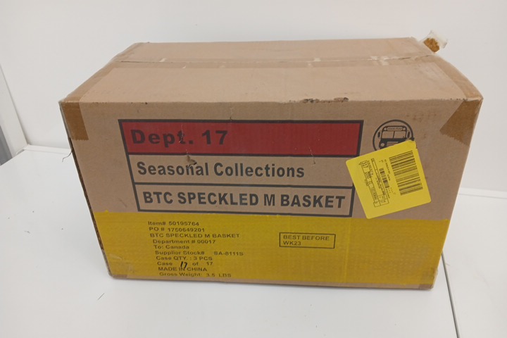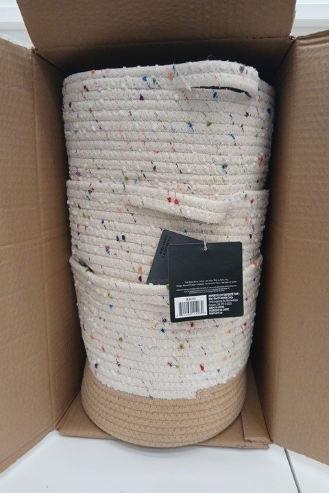 3PK hometrends speckled stitch weave baskets - 10" x 9" - white/brown (model: SA-8111s)