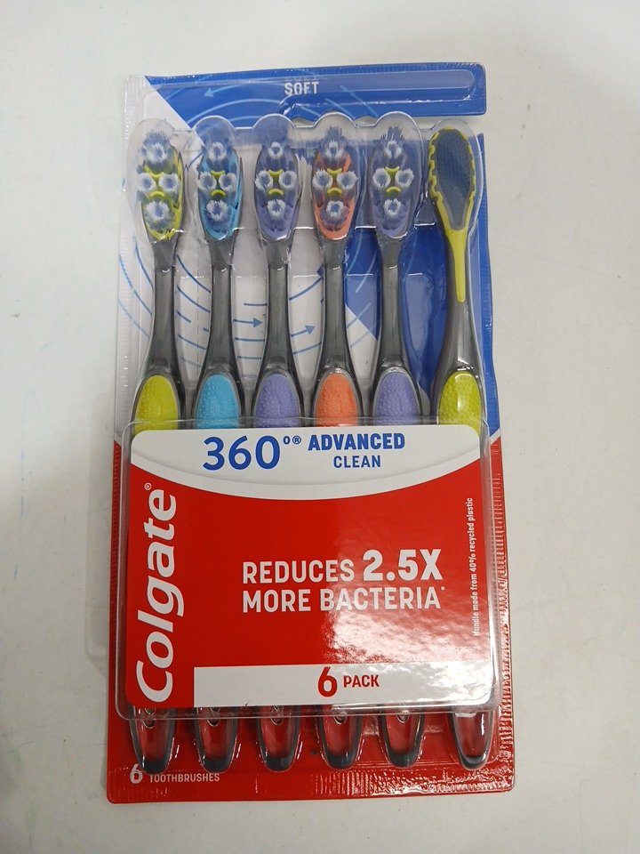6PK COLGATE 360 Advanced Clean Adult Soft Toothbrush with Cheek and Tongue Cleaner - ASSORTED COLORS