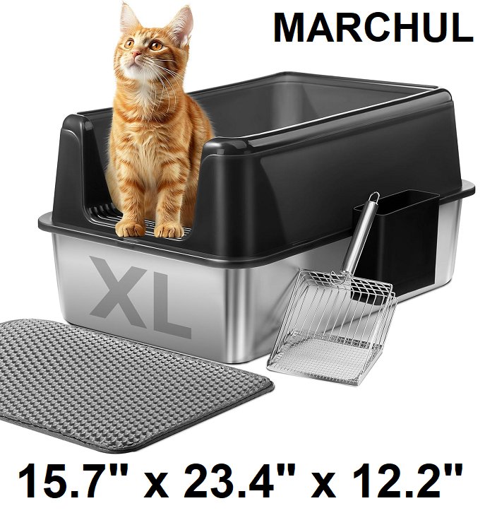 marchul cat litter box with open top - 15.7" x 23.4" x 12.2" - stainless steel