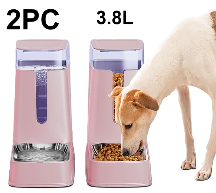 2PC HIPIDOG Automatic Feeder AND Water Dispenser Set- 3.8L - pink