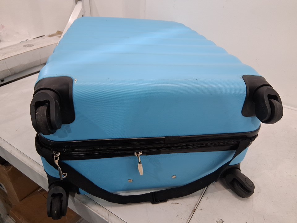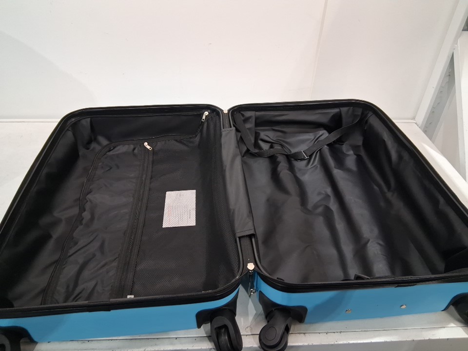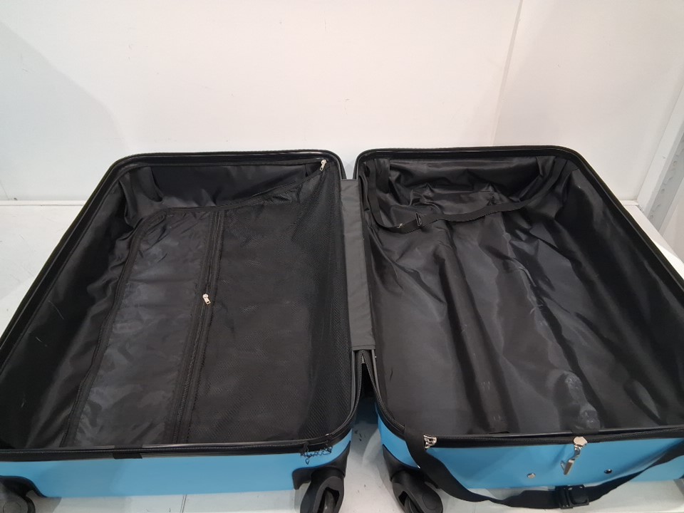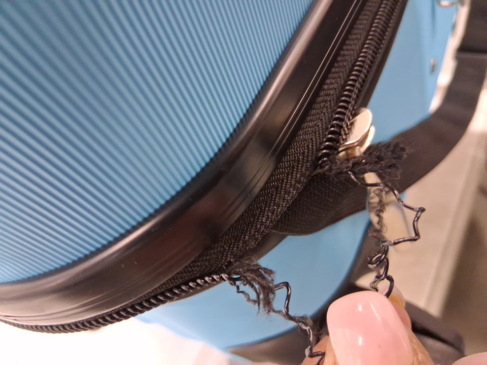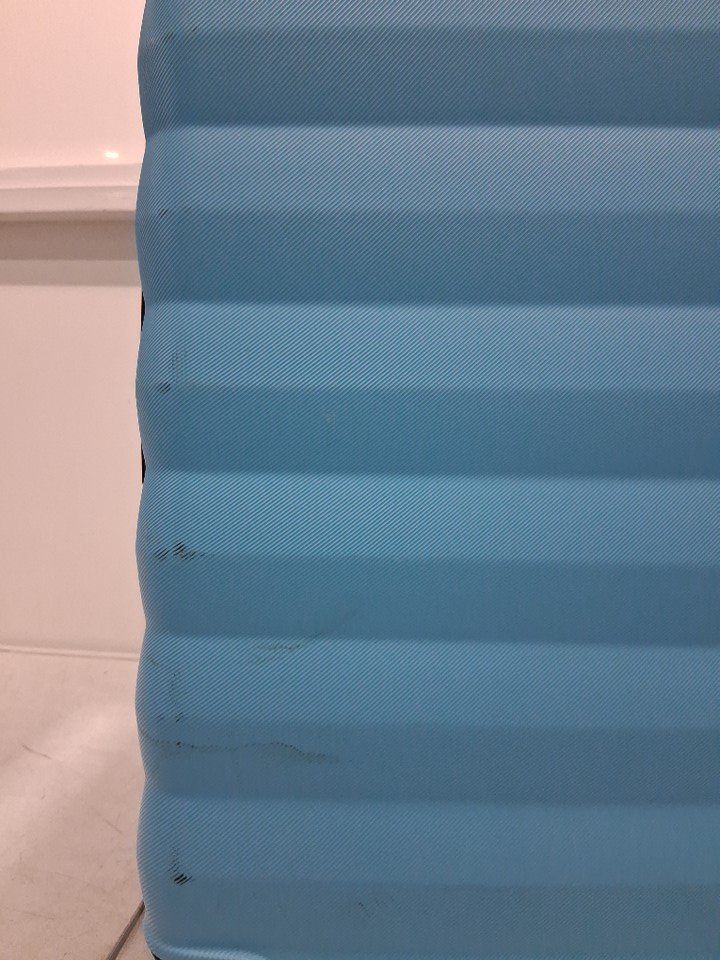 The item has some black smudges on some of the suitcases, and the 28" luggage zipper is broken. Please see the photos.