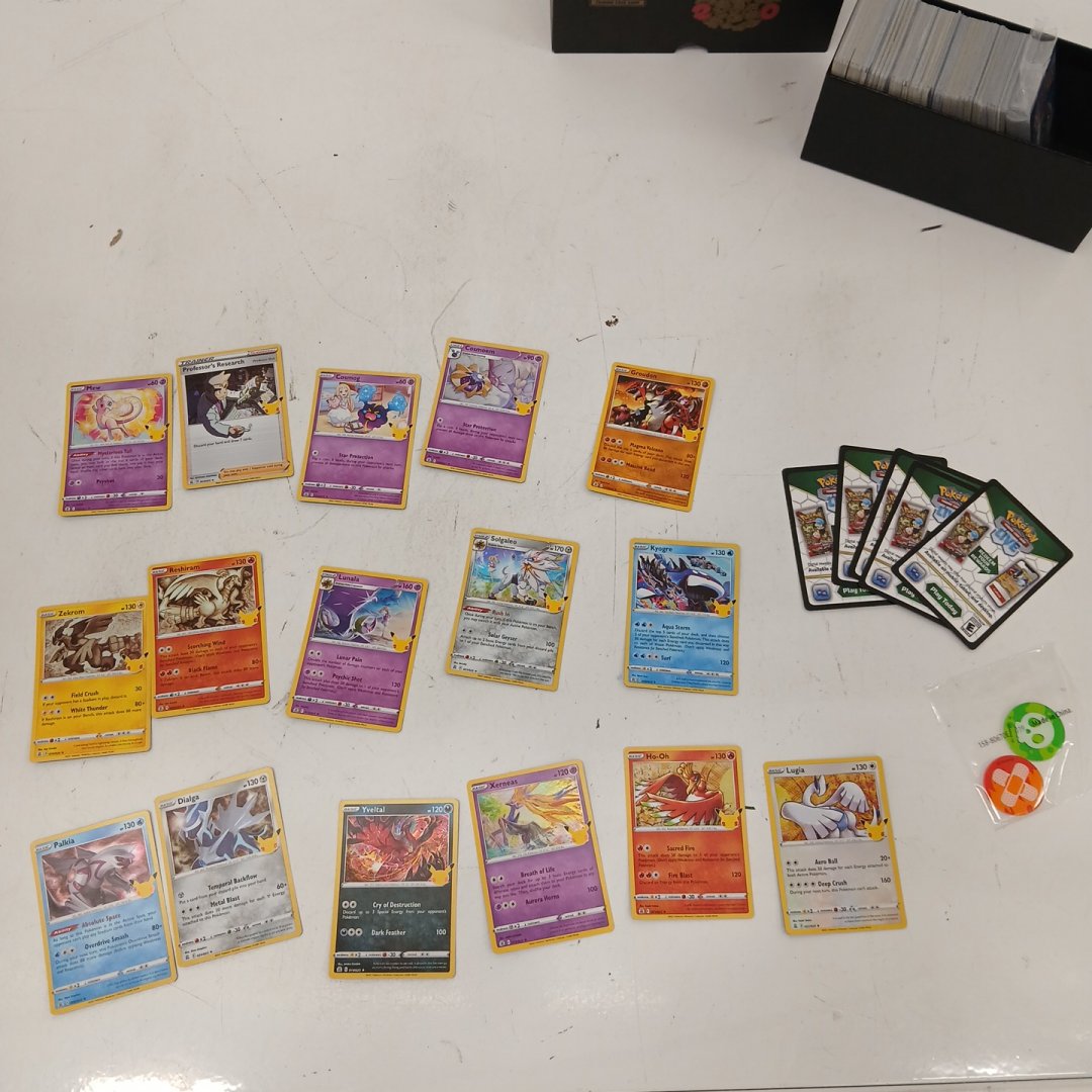 Approx 400 commons, uncommons, and rares Sealed pack of 50 energy cards **Complete art set of 16 Holofoil Rares from 2016 Pokemon Celebrations set** 2 Full art cards included 5 Code cards & 1 Counter Comes in a Pokemon Generations ETB.